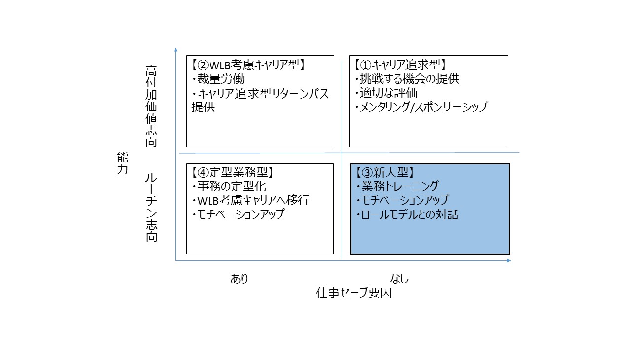 ![]() 最近、ネットで話題になったプロモーションビデオがあります。ご覧になったことがあるでしょうか。「ISETAN-TAN-TAN」という株式会社三越伊勢丹ホールディングスのCMです。矢野顕子さん作詞作曲の曲にあわせ、同社店頭の販売員や社員が店内でダンスする映像で、大きな話題となりました。実際にプロの振付師をつけ、中には動画オーディションをしたパートもあるとのこと。その結果、新宿の伊勢丹に行こう!と思えるようなCMに仕上がっています。私も最初に見たときは衝撃を受け、最後まで見てしまいました。 ■新人を「一般消費者に近い発想が出来る人」と再定義する このCMを撮影した新宿伊勢丹では2013年3月までに大改修を行っています。三越伊勢丹ホールディングス社長の大西氏によれば、店舗改装中に20代女性社員の方々が「聞いてほしいことがある」と直談判にいらしたとのこと。彼女たちの現場で感じているお客様の「肌感覚」を反映させた結果、現在のような2階を中心とした、「お買い場」(同社では伊勢丹時代から、売り場のことをお客様中心に考えて「お買い場」と表現している)を作り上げました。結果、2階の集客力がとてもよくなったとのことです。(2014年6月27日日経ビジネスオンライン記事 川島蓉子著「20代女子たちが変えた新宿伊勢丹の秘密」(「川島蓉子の『ダサい社長』が日本をつぶす」シリーズより) 同社の事例は、若手の声に耳を傾けた結果実現したもので、特殊なものと思われるかもしれません。でも、実はそんなことはないのです。また、産業構造が変わり、サービス業が中心となった現在においては、昔の製造業と違い、何十年もかけて技術を身に付ける業種はむしろまれです。短くて1か月、長くても半年、1年頑張れば一定程度のスキルがつくもののほうが多いでしょう。本人がどれだけ付加価値志向の仕事をするようになるかは、むしろ、管理者や経営者のモチベーションマネジメントによるところが大きいといえます。 働き方マトリックスを再掲してみましょう。 前回は、仕事セーブ要因があり、かつルーチン志向型のところの人に対して経営者はどうしたらいいか、ということを書きましたが、今回テーマとしたいのは、右下の③「新人型」の人たち、すなわち、仕事セーブ要因はないけれども、ルーチン志向である人たちです。 このカテゴリーの人たちは、新人であるが故のルーチン志向、すなわち、仕事そのものに対する習熟度からすると、まだまだ不足している側面があります。しかし、「知らない」「慣れていない」ということは、裏を返せば「一般消費者や顧客の立場により近い立場で発想ができる」ということを意味しており、マネジメントとしては、むしろ積極的に活用できる余地があるとも考えられます。 ■実は若手女性が開発したヒット商品がたくさんある こうして、若手女性が中心になってつくったものとして上述の事例以外にも、たくさんの事例があります。 ①マルコメ株式会社 プラス糀シリーズ(同社ホームページ「プラス糀 開発秘話」より) 150年以上糀を作り続けてきた同社の「糀の可能性への期待」と、女性社員からの「糀という素材を商品として形にしたい」という声から、女性を中心とした社内プロジェクト「プラス糀研究室」が発足しました。女性による消費者目線を追求、その結果、パッケージも白色のやさしい色で、従来の同社おなじみのロゴ「マルコメ君」ではなく、プラス糀シリーズのロゴに、「marukome」と黒字で小さく書いてあるプラス糀シリーズが誕生しました。糀ジャムや、万能調味料としての生塩麹などが人気となっています。 ②エース株式会社 スーツケースハント(女性の女性による女性のためのスーツケース)(同社2014年4月15日ニュースリリースより) 同社では2年前、入社1年目の女性がデザインを担当したラグーナライトというスーツケースが大ヒットしています。さらに、今年4月15日のニュースリリースでは、女性向けのスーツケースを本格開発するための若手女性6名による開発チームを組織したとの発表がありました。LCC路線拡大に伴い、気軽な女子旅を楽しめるよう、25歳から30代前半の女性をターゲットとしたスーツケースの開発を行ったとのこと。機能の細部に至るまで女性目線が活かされているとのことです。 ③パナソニック株式会社 ナイトスチーマーナノケア(同社ホームページ パナソニック企業情報「多様な人材が力を発揮できる企業へ。」より) 実は歴史が古い同社のBeauty製品。Panasonic Beauty製品の開発に関わる女性社員有志は、Panasonic美容向上研究部(通称美容部)を立ち上げました。忙しくても美しい女性をもっと増やしていきたい、という想いのもと、定例会で徹底的な議論を重ね、ナイトスチーマーナノケアなどのヒット商品を次々と生み出しました。現在は、この成功をふまえ、商品企画に自由な裁量権を持つ美容部のグローバル展開を進めています。 いかがでしょうか。このほかにも車やビールな