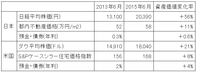 アベノミクス効果で日経平均株価も2万円を超え、資産を大幅に増やした人も少なくないようです。しかしそれは本当でしょうか?資産運用のご相談を受ける立場として一例を元に検証してみたいと思います。 ■この2年間で1億円はどうなったか? 仮に2年前に資産が1億円あったとして、それが現在どうなっているのか、検証してみます。検証のためにいわゆる「資産三分法」に基づき、預金・債券、株式、不動産の3つにバランス良く分散保有しているケースを考えます。 すなわち、2013年6月時点で、預金・債券を4,000万円、株式を3,000万円、不動産を3,000万円の合計1億円を保有していた例です(ケース1)。 ここでは話をわかりやすくするため家賃収入や配当というインカムゲインおよび税金は無視して純粋なキャピタルゲインの変動だけを考えることにします。 2013年6月と2015年6月の日経平均株価、都内不動産価格から資産価値変化率を計算すると、それぞれ+56%、+11%となります。また預金と債券は合せて年利約0.3%として2年間で+0.6%変動と仮定しました(図表1)。 【図表1】 図表1の資産価値変化率をケース1の預金・債券、株式、不動産のそれぞれに対して適用した結果が図表2です。 【図表2】 ![]() ■アベノミクス効果は大きかったものの 図表2を見ると分かる通り、この2年間で資産は約20%増加しています。年利約10%と言えばまあ悪くない数字ではないでしょうか。中でも株価が50%以上上昇した影響はとても大きいものがあります。いろいろ批判もありますがアベノミクス効果が端的に表れた結果といえそうです。 しかしこの運用は必ずしも成功とは言えない面があります。なぜならこれは為替の影響をまったく考慮していないからです。この2年間で為替レートは大きく円安に振れました。ケース1についてこの影響を考えるとどうなるでしょう?(図表3) 【図表3】 ![]() 結果は、103万ドルから97万ドルへと約9%減っています。すなわち資産運用が成功したとは言えないのです。 ■通貨分散も必要な時代に ではどうすればよかったのでしょう?ここまで来ればもうお分かりだと思いますが、外貨建ての資産を加えておくべきだったのです。 そこで、2年前に円資産5,000万円とドル資産5,000万円をそれぞれ資産三分法で保有するケース2を考えてみます(図表4)。 【図表4】 ![]() 図表1に加えて、同様に米国の各種指数の変化を含めて整理したものが図表5です。 【図表5】 図表5の資産価値変化率をケース2の1億円に対して適用した結果が図表6です(円資産は日本の指標の影響、ドル資産は米国の指標の影響を受けるとした)。 【図表6】 ケース2の場合、円換算で約30%増加、ドル換算でほぼトントン(約2%増加)となり、ケース1の場合と比べて、より有利な運用ができたことが分かります。 つまりそれだけ「為替変動のインパクトは大きく身近なものである」ということを認識しなければいけないのです。もはや輸出入が関連する企業だけの問題ではないことがお分かりいただけるかと思います。 注)図表1,5の数値は、日本銀行、日本経済新聞、東京カンテイ、S&P Dow Jonesのデータから概算値を算出。 【関連・参考記事】 ■金利15%なのに満期時になぜか損してしまう外貨預金のカラクリを暴きます! http://sharescafe.net/34390958-20131029.html ■株、債券etc.金融資産はなぜ値動きするのか!? http://sharescafe.net/44910410-20150527.html ■高値更新中!日経平均株価の「過去、現在、未来」 http://sharescafe.net/43980550-20150327.html ■日経平均株価、15年ぶり2万円台回復~15年前との共通点と相違点 http://sharescafe.net/44421804-20150424.html ■円が1ドル120円を突破 円安の功罪 http://bit.ly/16s9gnR 皆川芳輝 ファイナンシャルプランナー/経営アドバイザー グローバルライフプランナーズ合同会社代表 シェアーズカフェ・オンラインからのお知らせ ■シェアーズカフェ・オンラインは2014年から国内最大のポータルサイト・Yahoo!ニュースに掲載記事を配信しています ■シェアーズカフェ・オンラインは士業・専門家の書き手を募集しています。 ■シェアーズカフェ・オンラインは士業・専門家向けに執筆指導を行っています。 ■シェアーズカフェ・オンラインを運営するシェアーズカフェは住宅・保険・投資・家計管理・年金など、個人向けの相談・レッスンを提供しています。編集長で「保険を売らないFP」の中嶋が対応します。 |